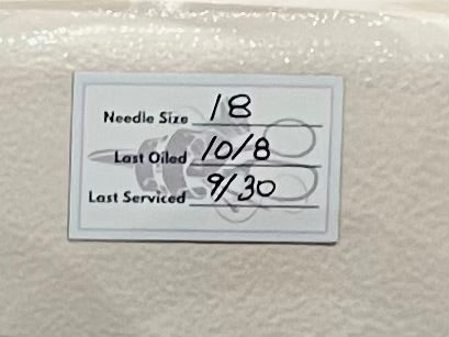 Add a lovely sticker to your machine, help yourself by knowing which needle is in on the machine, and record the date when the needle was replaced, the last oiling date, and the last time the machine was serviced or given a good cleaning.